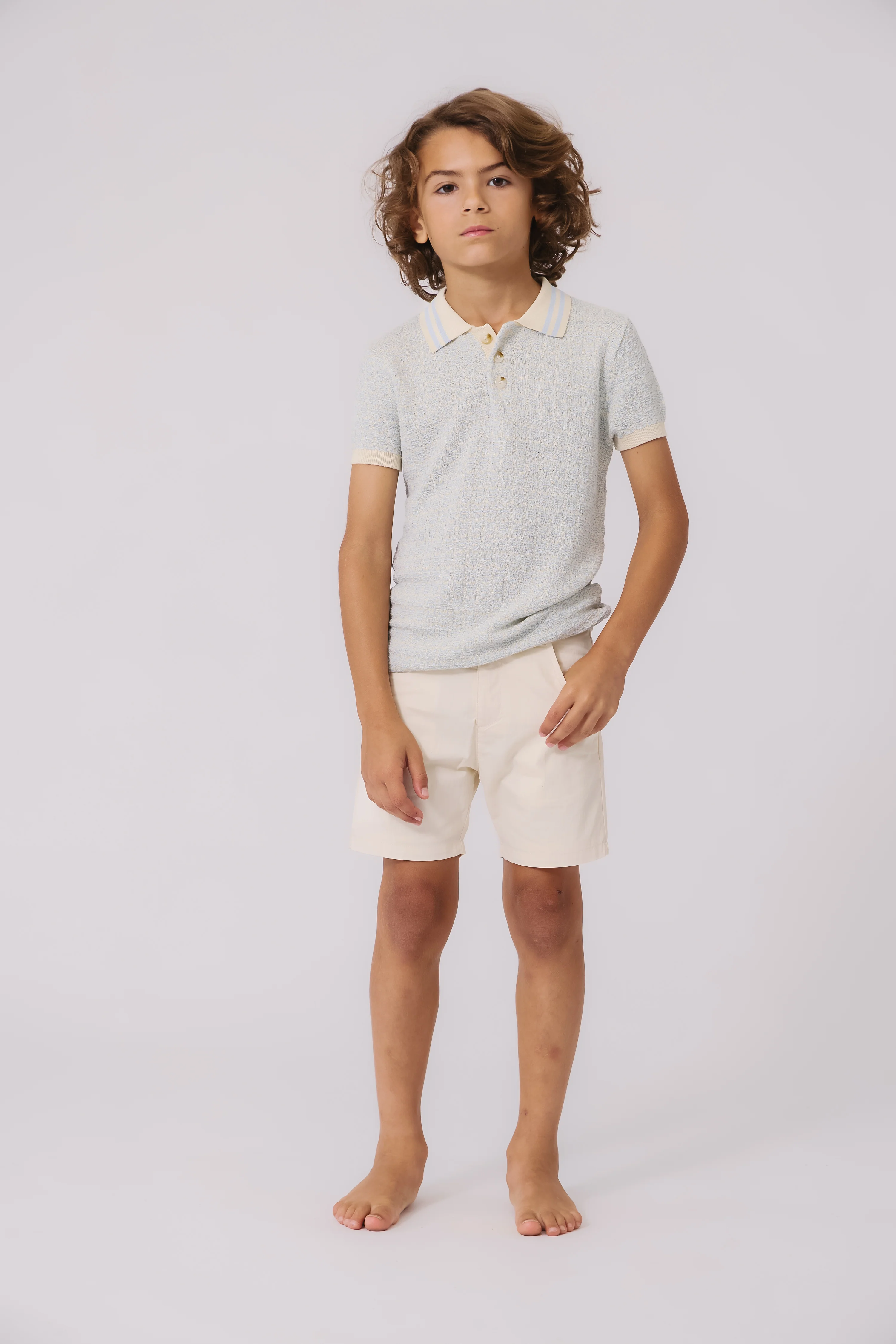 Farren And Me Pique Knit Washed Polo - Light Blue Wash